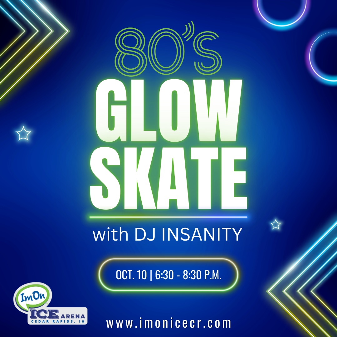 ImOn Ice is inviting you for an evening of 80’s fun! From 6:30-8:30 PM on Friday, October 10th, patrons can enjoy free glow sticks, 80’s nostalgia, and a live DJ while they skate. The event is $15 per skater (admission with rental included). *Skates are first-come, first-serve*