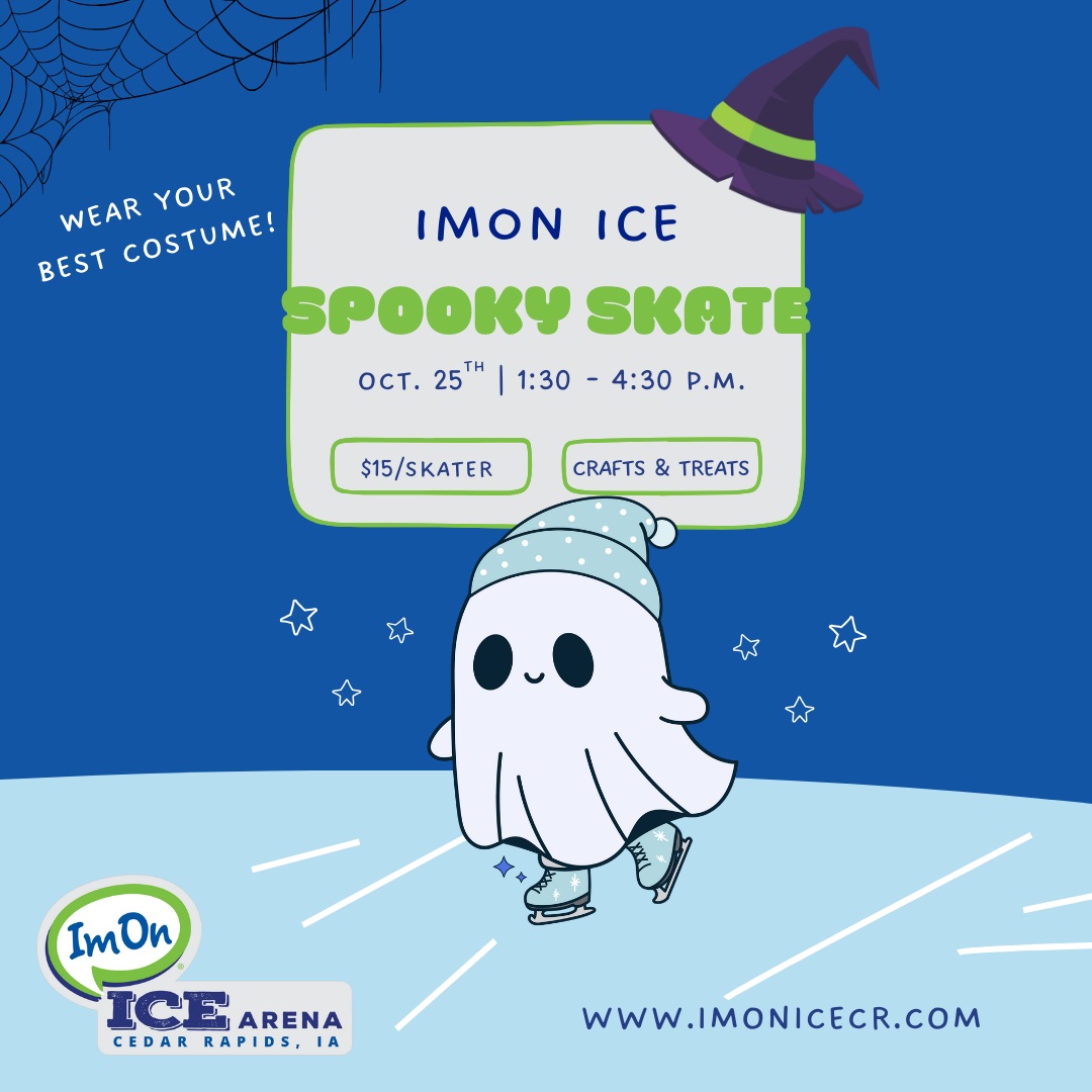 ImOn Ice is inviting you for some spooky skating fun! On Saturday, October 25th, from 1:30-4:30 PM, patrons can bring their best costumes for some spooky skating, creepy crafts, and tricky treats! Admission is $15 per person (skate rental included). *Skate rental is first-come, first-serve*