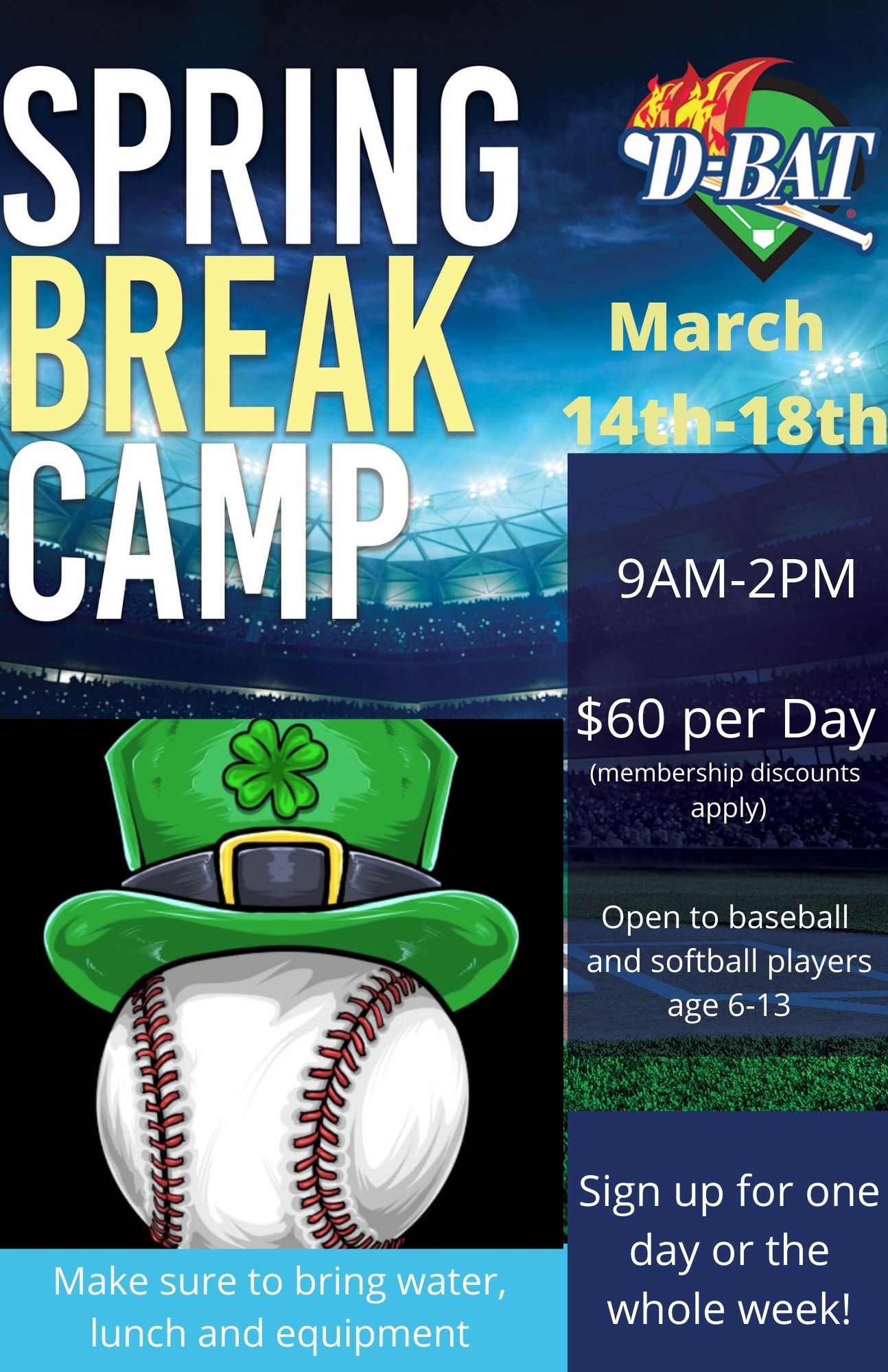 A baseball/softball spring break camp focusing on fundamentals while having a ton of fun. You can sign up for 1 day or 5 days.