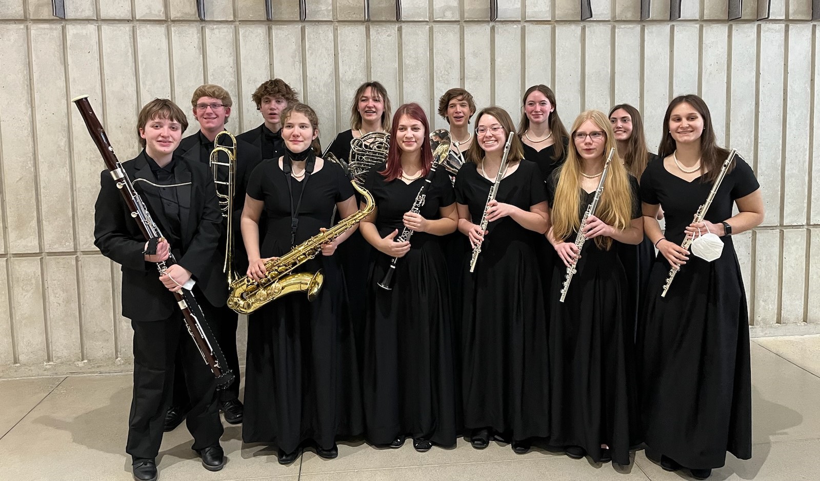 On Saturday & Sunday, we had 12 students represent PHS at the University of Iowa Honor Band in Iowa City. They rehearsed all day Saturday with guest conductor Dustin Seifert (Director of Bands, Eastern New Mexico University), and then presented an outstanding concert on Sunday afternoon in the beautiful Voxman Music Building Concert Hall. They also participated in masterclasses with the UI music faculty and heard performances by the Iowa Concert Band and Symphony Band. The honor band was made up of over 100 students from over 30 different schools, including several All-State musicians. Prairie HS student selected for this event were: