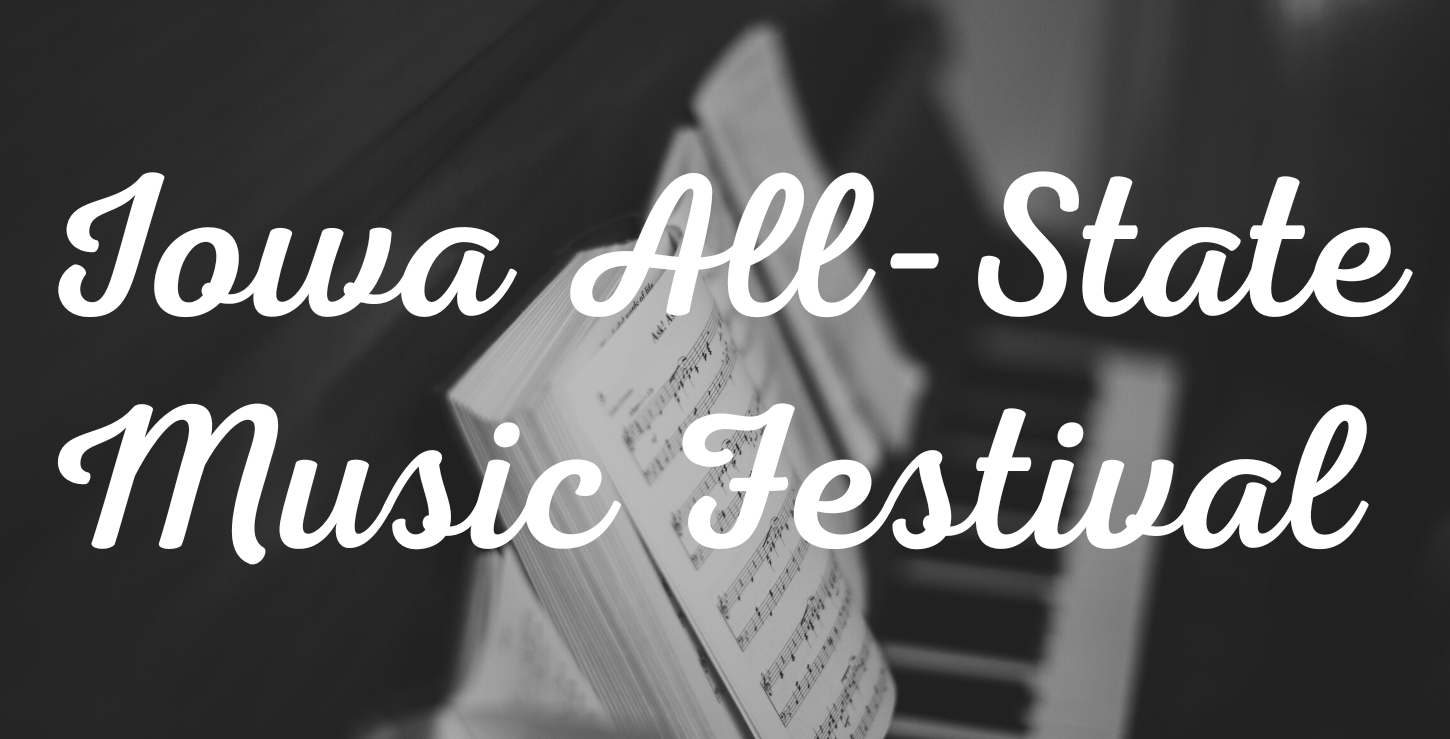 Participants will rehearse with acclaimed guest conductors in Ames November 18-19, followed by the All-State Music Festival’s Final Concert in Hilton Coliseum on the campus of Iowa State University. This final program is recorded by Iowa Public Television and presented numerous times during the holidays.
