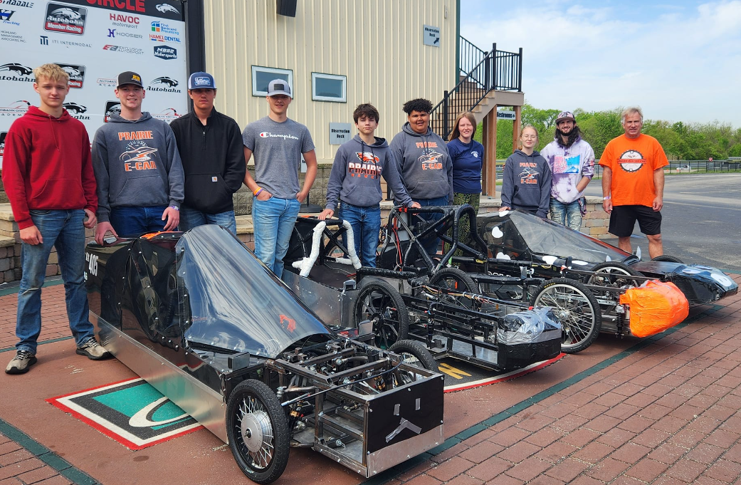 The Prairie Electric Car Team (ETeam) roared into the 2024 season with a winning spirit. They designed and built two new electric cars (#404 AGM powered & #405 lithium) to add to their existing fleet (#400 AGM powered & #403 lithium powered). Their dedication to innovation and competition was evident throughout the year.