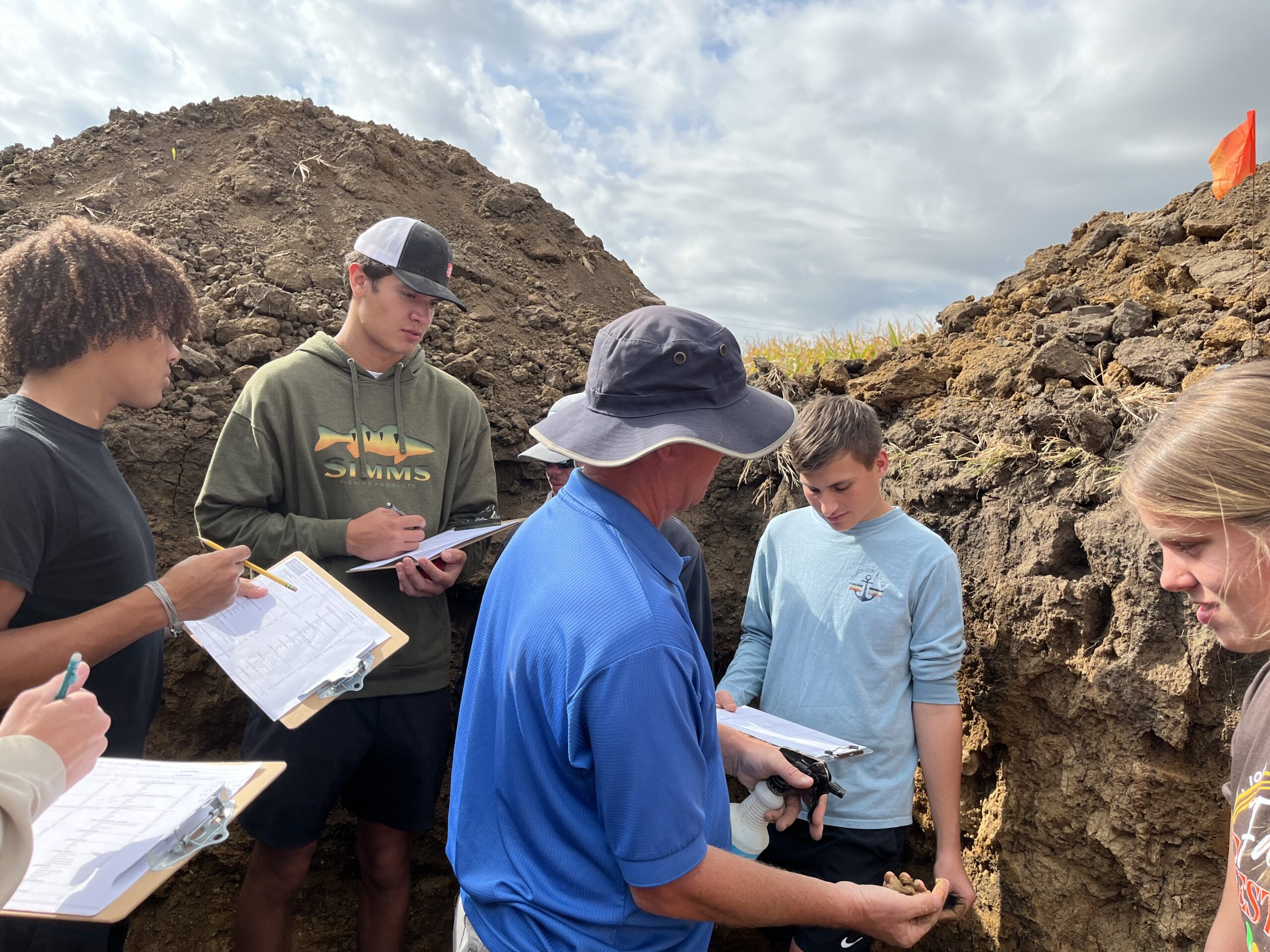 Sedlmayr focused on the connection between farming practices and soil health. She demonstrated how tillage and no-till methods can impact soil structure and explained the benefits of sustainable agricultural practices. The team also guided students through a soil test pit at the Prairie Learning Farm, preparing them for the upcoming soil judging contest and class assessment.