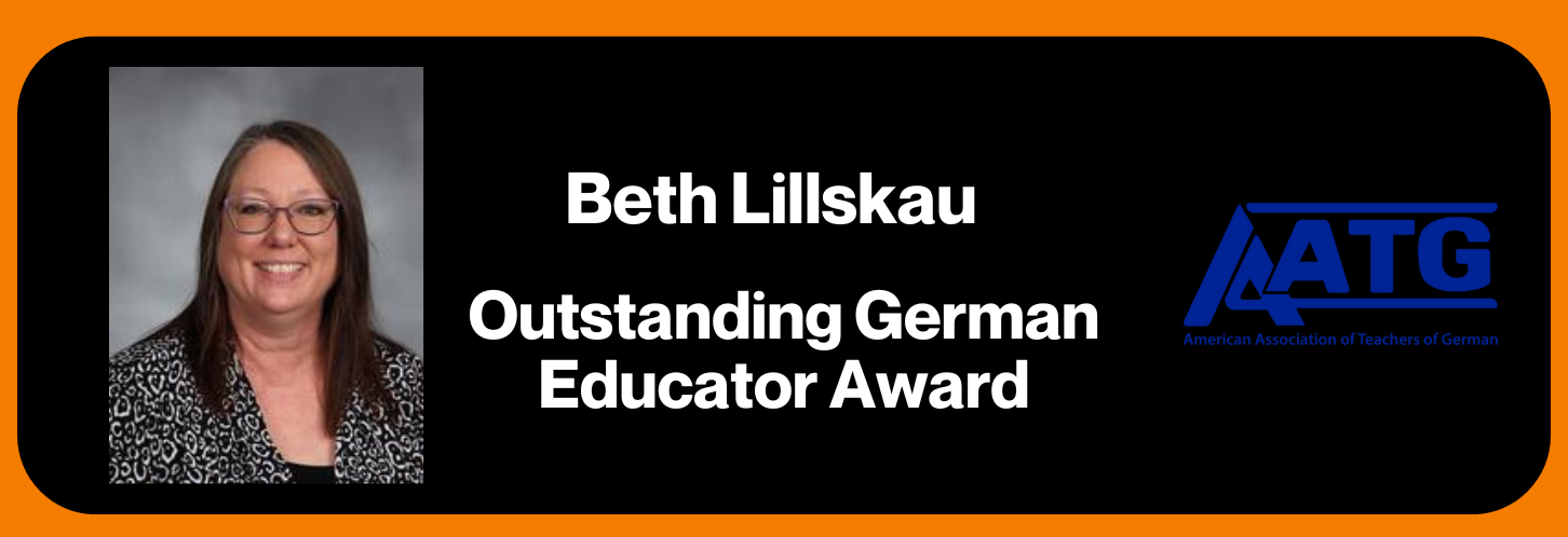 Congratulations to Prairie High School teacher Beth Lillskau has received AATG’s (American Association of Teachers of German) highest honor, the Outstanding German Educator Award.